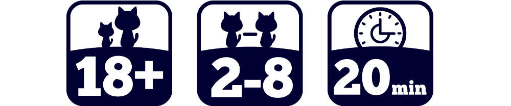 プレイヤーカード8枚、お題カード48枚(89x58mm)、ルール