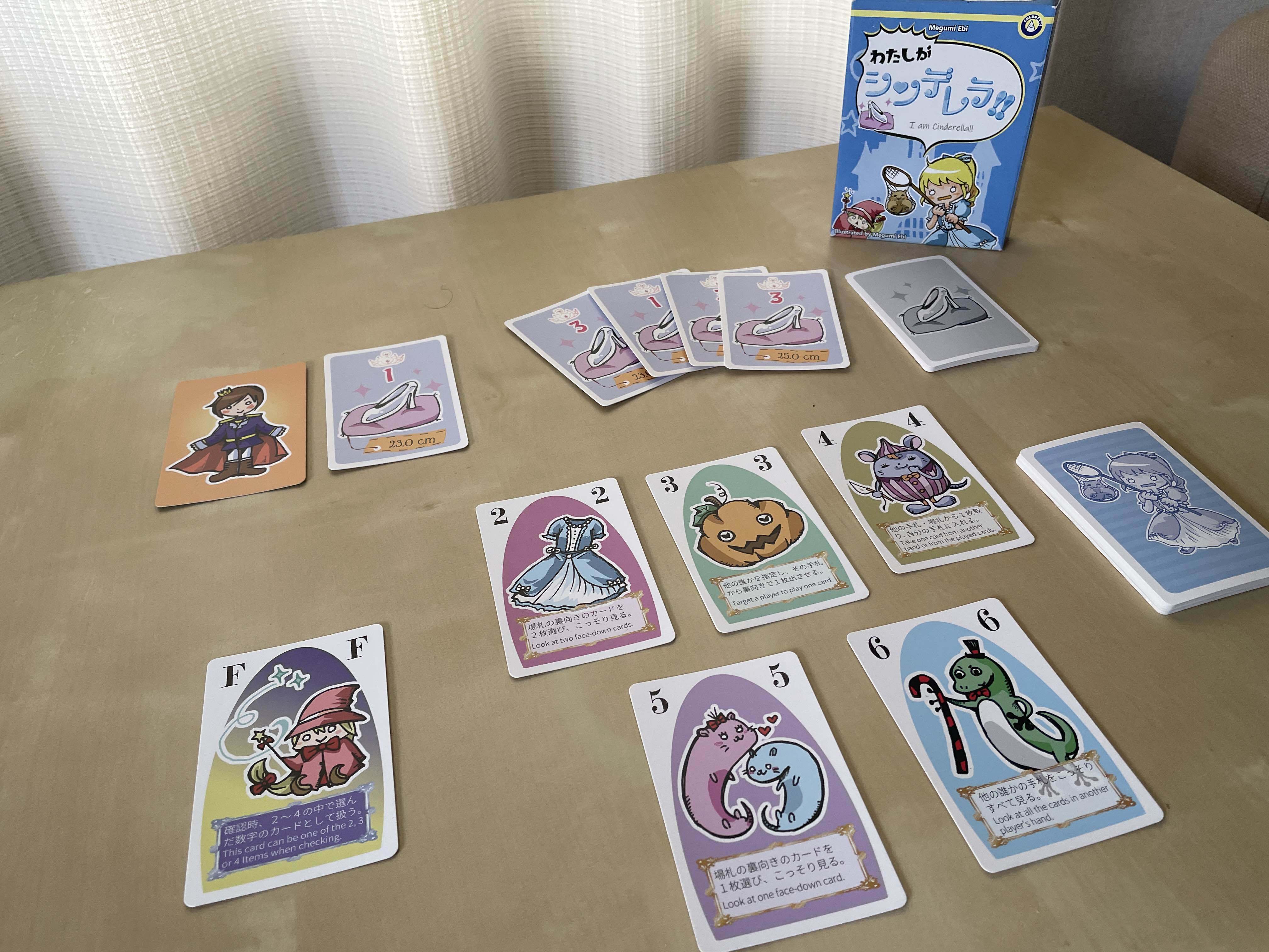 シンデレラカード21枚、くつカード14枚、王子カード1枚、カードサマリ6枚、ルール